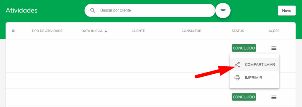 Agora, atividades com status Concluído podem gerar um link de compartilhamento do arquivo.