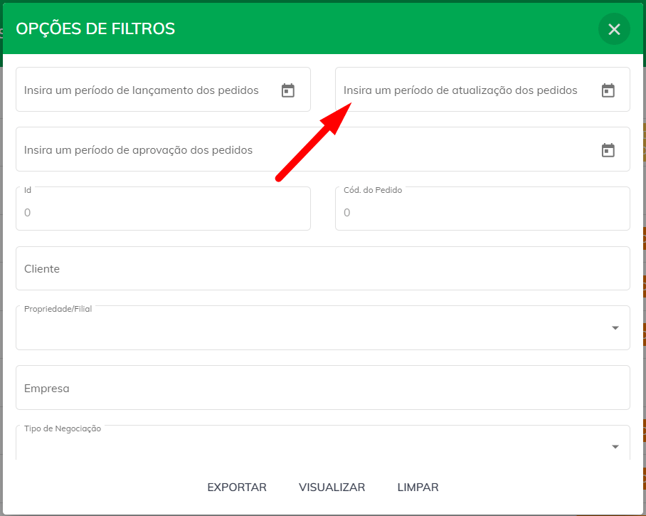 Agora é possível filtrar também pela Data de atualização do status, facilitando análises e auditorias.