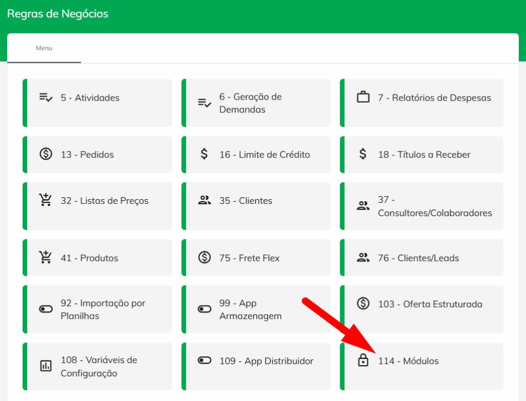 Agora, todas as regras relacionadas à ativação ou controle de módulos ficam centralizadas nesse novo agrupamento, facilitando o entendimento e trazendo mais transparência.